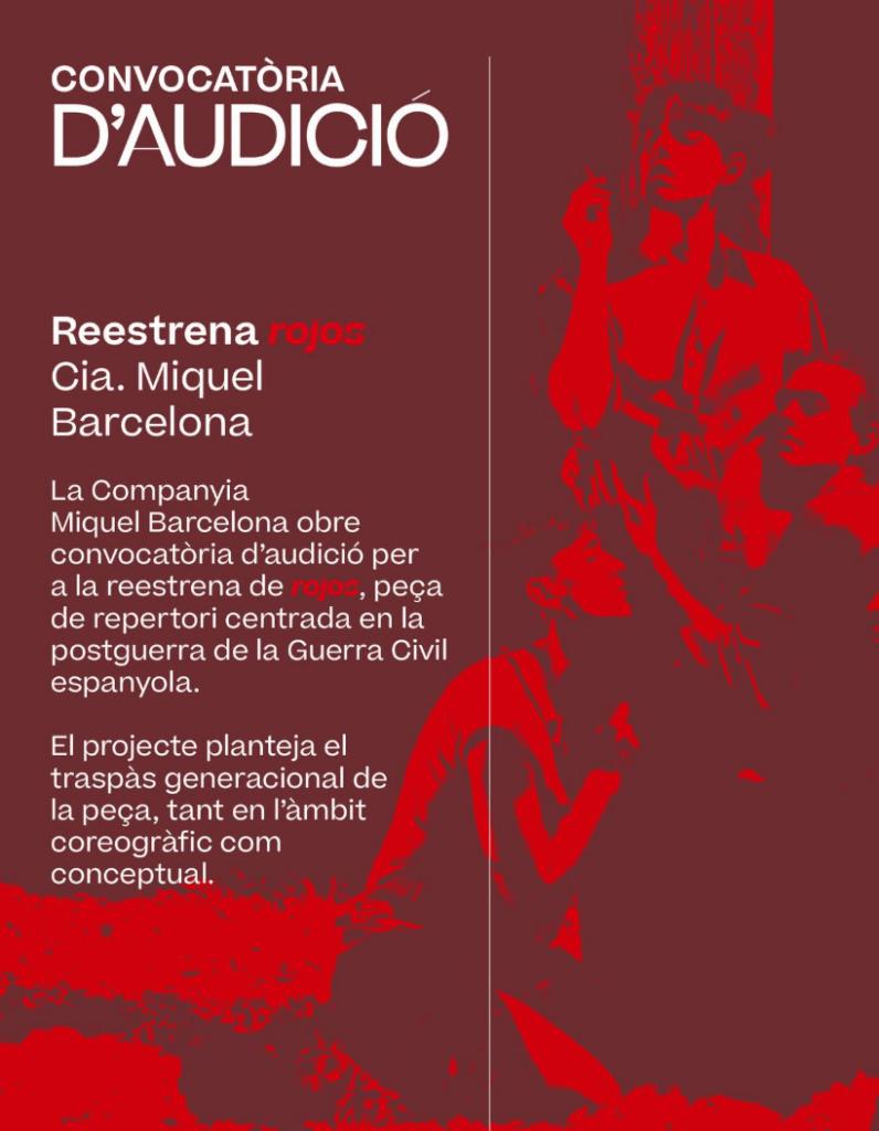 Se buscan 4 intérpretes de danza contemporánea de 18 a 25 años para reestrenar “ROJOS”.